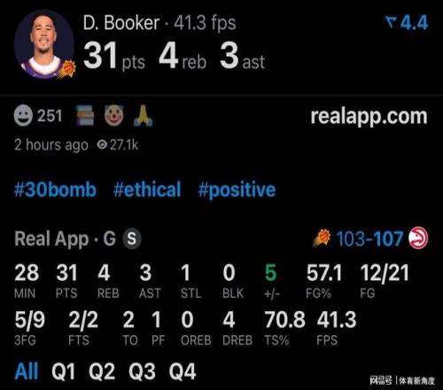 而在今天这场比赛退赛之前,布克状态神勇,21次出手命中12次,三分球9投5中,砍下了31分、4个篮板和3次助攻。